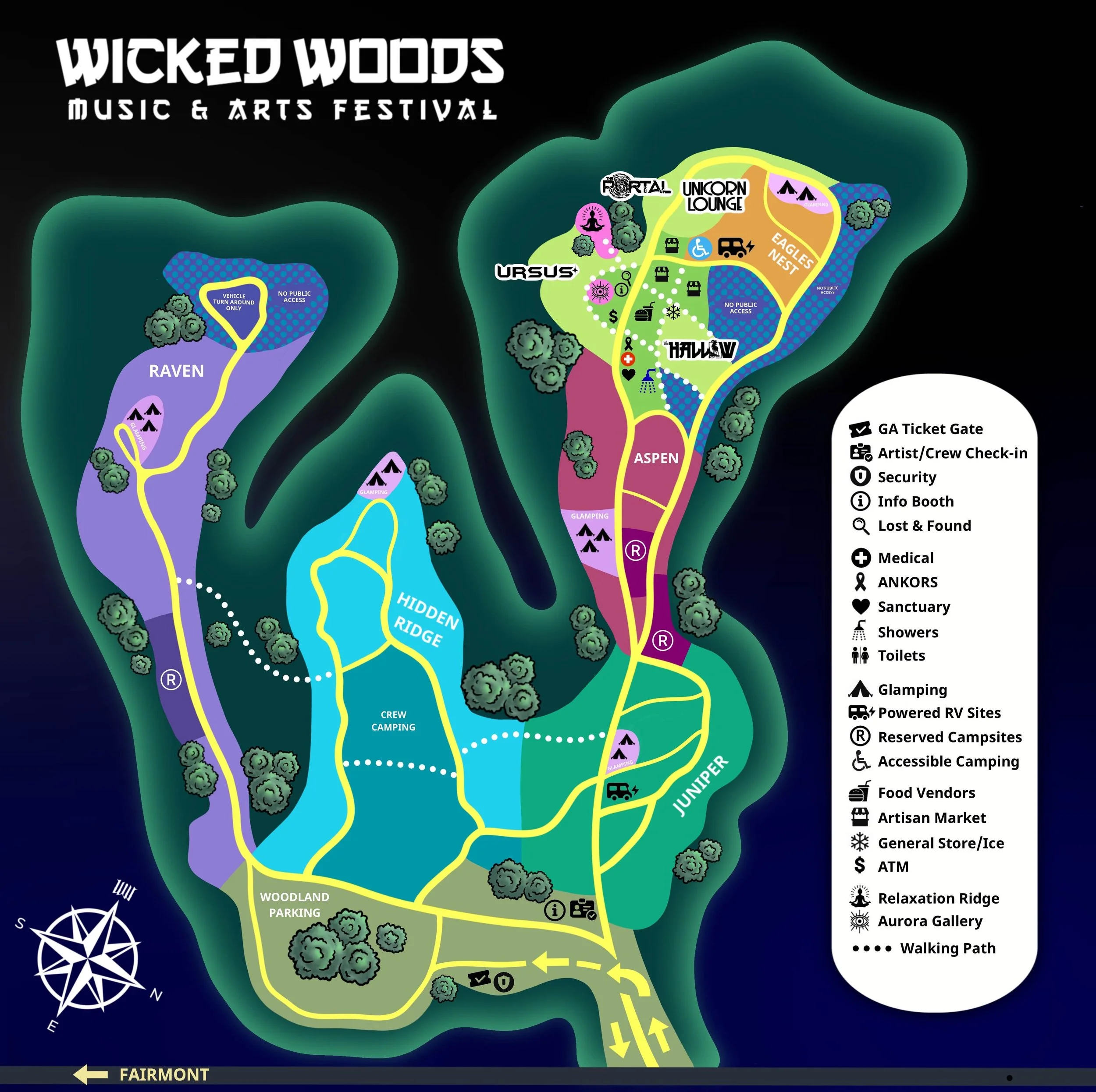 In an effort to encourage car-pooling and optimize our limited parking areas, Wicked Woods does not offer Free Parking on the festival grounds.